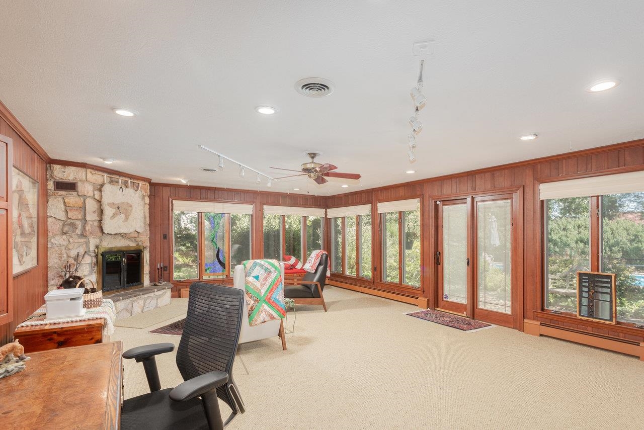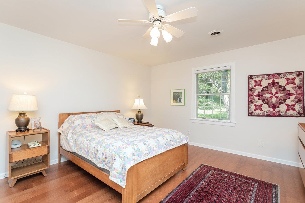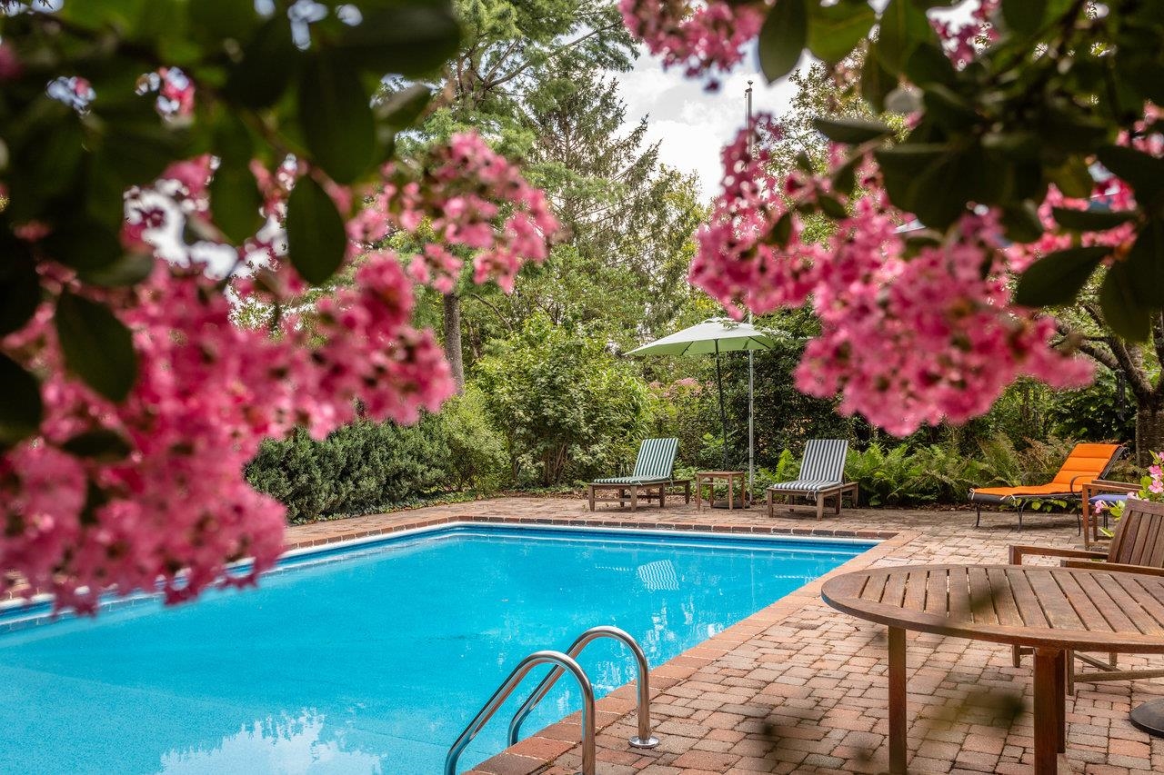 This exquisite mid-century modern beauty has been meticulously maintained and updated by its owners for 50 years. It resides on just over 3/4 acres on the uber-popular last block of New York Ave in Sunset Heights. The location is unbeatable, with convenient access to downtown Harrisonburg, JMU, and Westover Park. A park-like setting with lush landscaping, intimate sitting areas, a courtyard, & private in-ground pool. A sweeping floor plan offers one-level living at its finest. The kitchen is the home's centerpiece, showcasing curved cabinetry, intricate shelving, a large island, a walk-in pantry, & a built-in desk and eat-in dining area. An adjacent formal dining room allows formal engagements and celebrations. The formal 23X19 great room in the front of the home, and a 19X25 family room with a stone wood-burning fireplace in the rear, offer multiple entertaining options. Abundant sunlight pours through the family room's 13 windows and sliding door that walks out to the pool. Parquet and hardwood floors grace the majority of the home. Both full bathrooms are beautifully updated, & the bedroom configuration provides privacy. An optional fourth bedroom (not pictured) has served as a study. This is a special & unique opportunity!