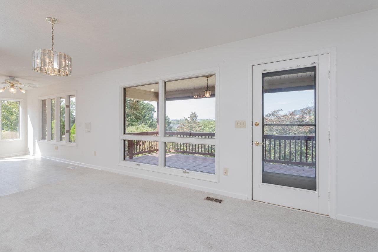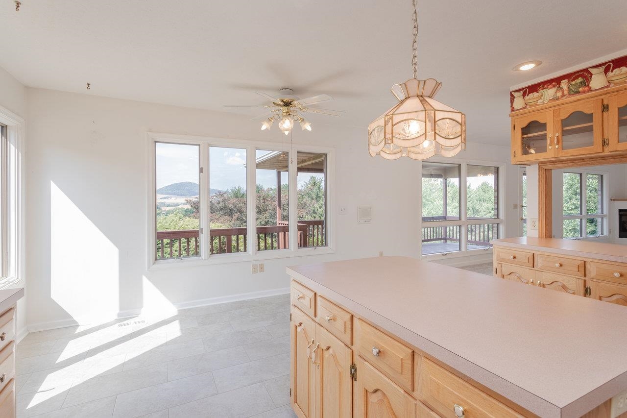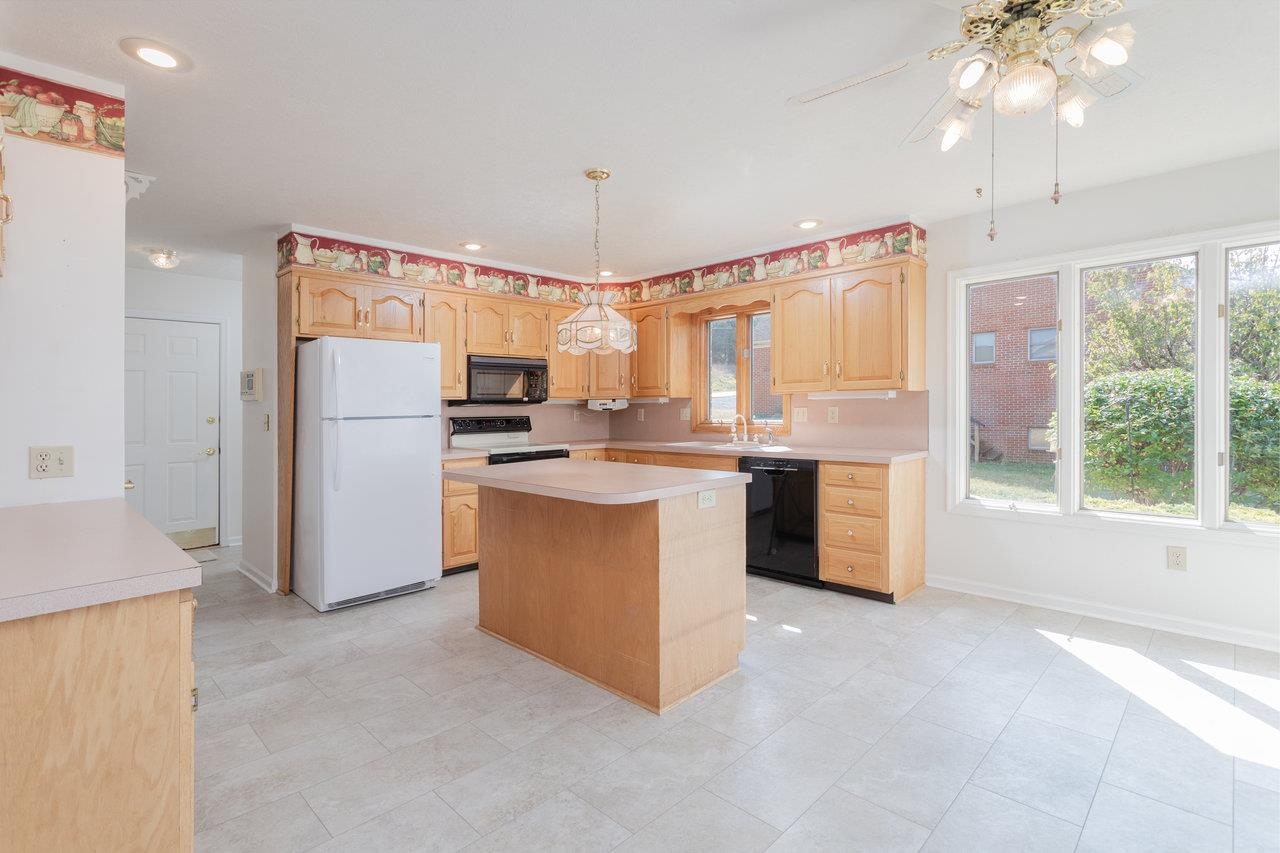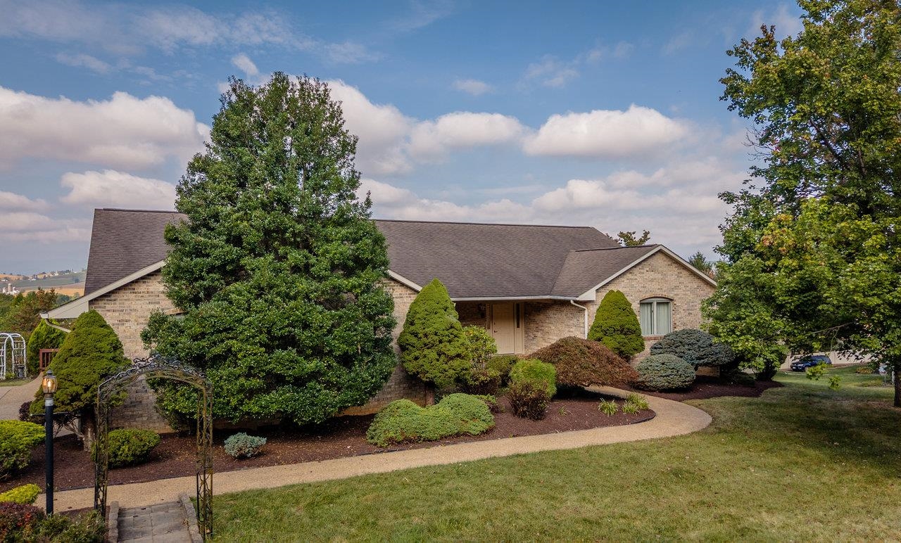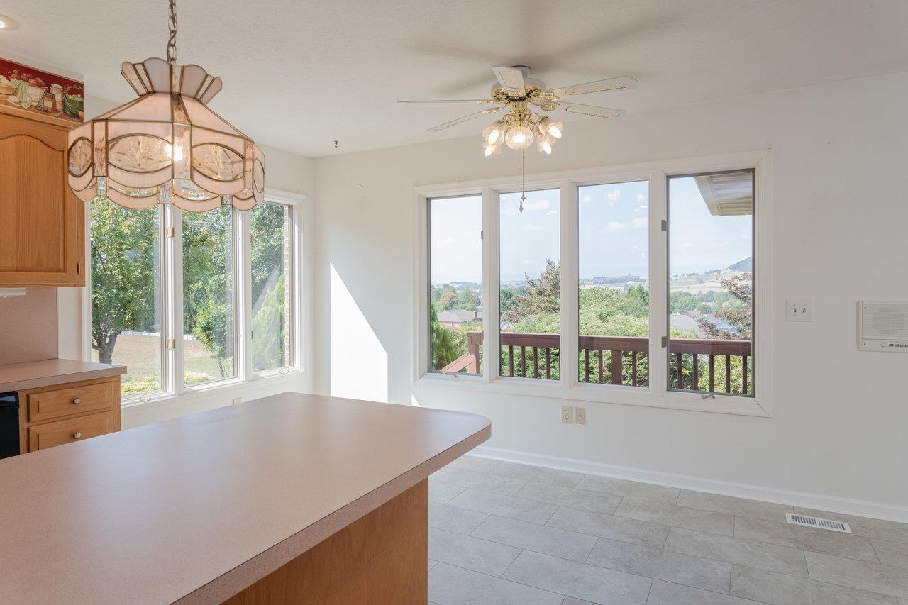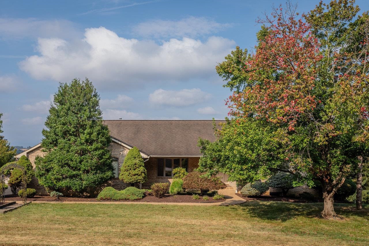 All-brick home with spectacular mountain views in Belmont! Entry foyer opens to a living room with bay window. The heart of the home is an almost entirely open kitchen/dining/living area with gas fireplace, built-ins, and new carpet & LVT flooring. A wall of picture windows frames sweeping ridge line views and floods the space with light; venture outside to a large covered rear deck to enjoy them year-round. Main level living includes three bedrooms and two full baths, including an owner’s suite with a walk-in closet, plus a handy half bath and laundry with utility sink. A large two-car garage is on this level for easy everyday coming and going. The walk-out lower level features a huge rec room and a third full bath, together with 2,000+ sq ft of unfinished space with 10-ft ceilings—ideal for storage, workshop, or future expansion. Extensive, mature landscaping wraps the home. Convenient to town yet with that “out there” view—come see 624 Erickson Avenue!