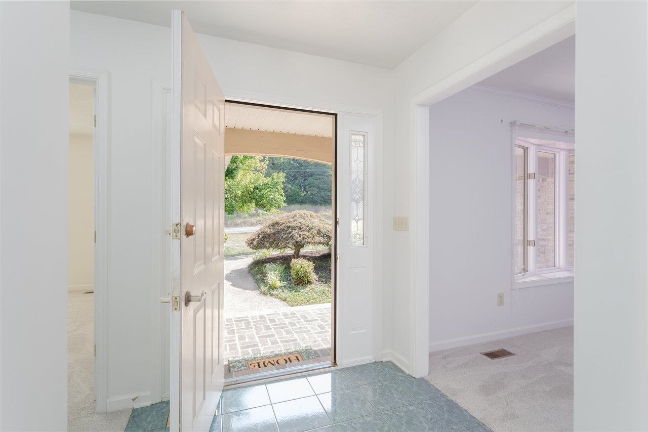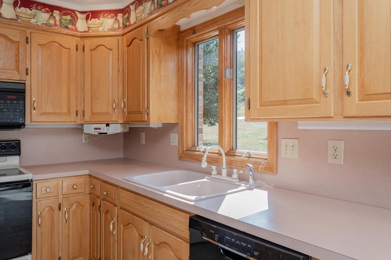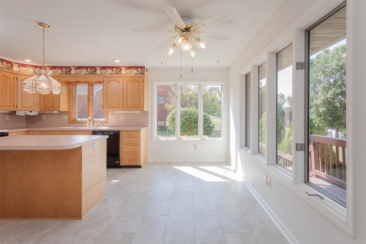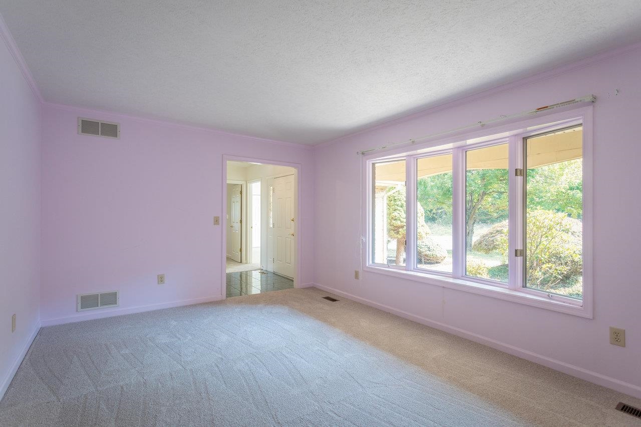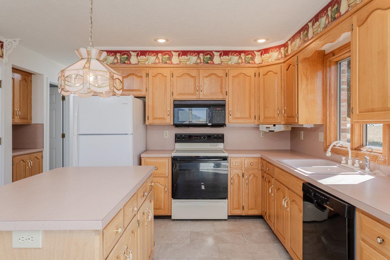 All-brick home with spectacular mountain views in Belmont! Entry foyer opens to a living room with bay window. The heart of the home is an almost entirely open kitchen/dining/living area with gas fireplace, built-ins, and new carpet & LVT flooring. A wall of picture windows frames sweeping ridge line views and floods the space with light; venture outside to a large covered rear deck to enjoy them year-round. Main level living includes three bedrooms and two full baths, including an owner’s suite with a walk-in closet, plus a handy half bath and laundry with utility sink. A large two-car garage is on this level for easy everyday coming and going. The walk-out lower level features a huge rec room and a third full bath, together with 2,000+ sq ft of unfinished space with 10-ft ceilings—ideal for storage, workshop, or future expansion. Extensive, mature landscaping wraps the home. Convenient to town yet with that “out there” view—come see 624 Erickson Avenue!