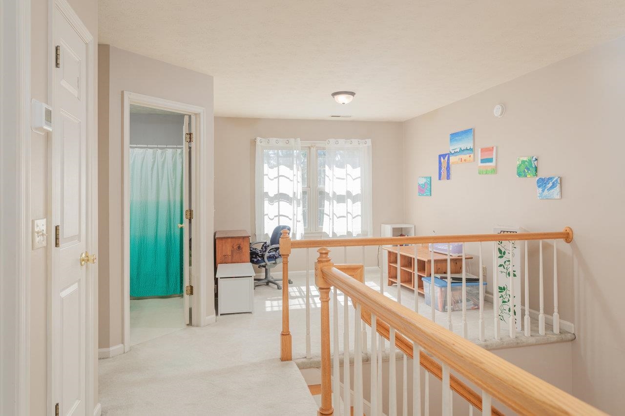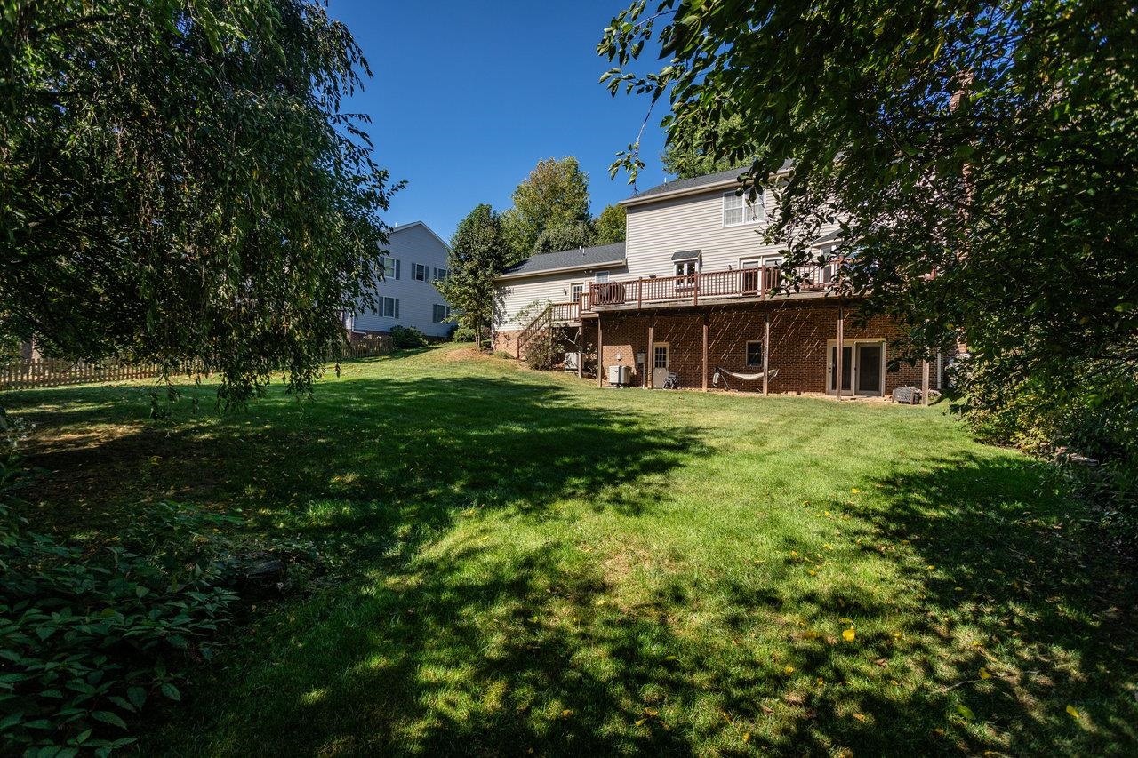 This adorable colonial home resides on Bluewater Rd, a tranquil street in the heart of Lakewood subdivision. Mature trees and landscaping surround the home, and an open, flat rear yard provides fantastic space for a garden and backyard activities. Greet your friends from your full-length, private front porch, and invite them to join you for dinner on the oversized rear deck! Inside, the home offers numerous entertaining options with formal and informal dining areas, and a partially finished basement with a bar. The unfinished side of the basement provides an abundance of storage space. On the main level, a room to the left of the foyer is a great option for a home office or den. To the rear of the home is a cozy great room with a gas fireplace that flows into the large kitchen with solid surface countertops and a breakfast bar. The primary suite, two spare bedrooms, and a landing area at the top of the steps are located on the second level. Recent updates include A 50-year roof installed in 2022 and the replacement of both HVAC units in 2019. The water softener is less than three years old. An attractive home at an affordable price - schedule your showing today!