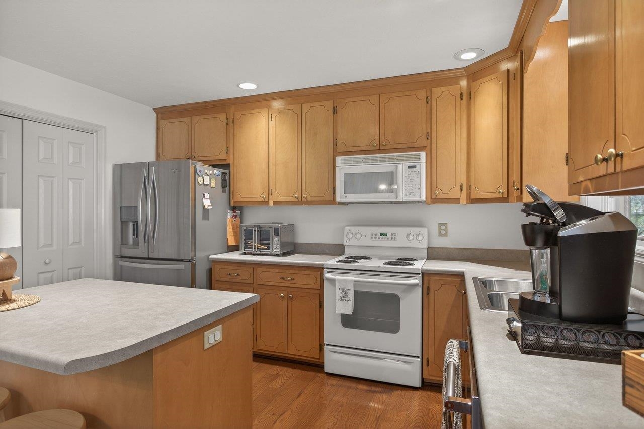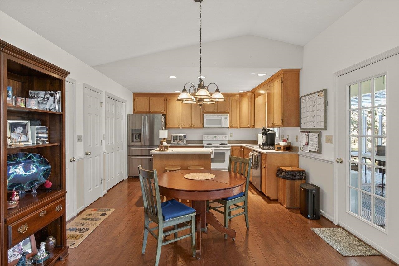 Beautiful one owner Ranch in Parklawn! As you step inside, you are greeted by the warm and cozy gas fireplace located in the Living Room. The vaulted ceiling adds the feel of openness and space, plus you have the cheerfulness of natural lighting. The Kitchen and Dining Area open to a relaxing Sunroom that overlooks a large deck and back yard. Lovely hardwood floors (2016) lead from the main living area back the hall to the bedrooms. The Primary Bedroom has a walk-in closet and private bath, while the 2 secondary Bedrooms share another Full Bathroom. Don't miss the double car garage! Brand new Heat Pump in 2025! This home is move-in ready and waiting for you! Close to schools and golf course!